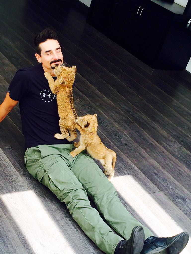 I don’t know about you guys, but I haven’t forgotten the way he confidently led the Boys into the woods in the BSB Documentary. Or the fact he grew up in a camp in the middle of the woods. This would be second nature to Kevin. And while there may not be Lions, or Tigers… (Maybe bears? Oh my!) There are still plenty of animals for major opportunities of nature cuteness from Kevin. Look at the photos of him with the lions! And those are wild beasts mind you. I’m starting to think he’s like the boyband version of Snow White.