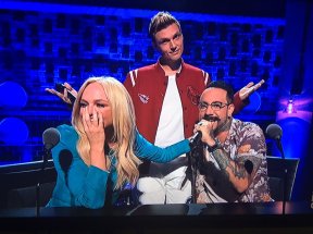 Wise words from NSYNC’s Chris Kirkpatrick, one of the special guests as Boy Band went live for the very first time this week. It’s in the line of what Nick’s been saying since the pilot and it’s something that once again rang true tonight when it came to tonight’s elimination. The other special guests were our own AJ and Bobby Brown from New Edition. I was actually a little disappointed they weren’t more actively part of tonight’s show. I thought they would be. Really they helped with the epic intro which showcased all the contestants singing a medley of boyband hits – Starting with New Edition and spanning through to NKOTB, BSB, NSYNC, and One Direction.