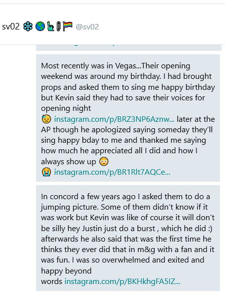 And we continue our series of focusing on the light and love in the fandom. I asked for your best experiences with Kevin! I know I’ve personally been SO thankful he’s back in the group. It reminds me that while I still adored BSB during Unbreakable and This Is Us, it just wasn’t the same till he came back. Kevin, I hope you know how awesome and downright amazing you are. You make every fan feel like the only one in the room when you talk to them – and I’m not the only one who feels this way.