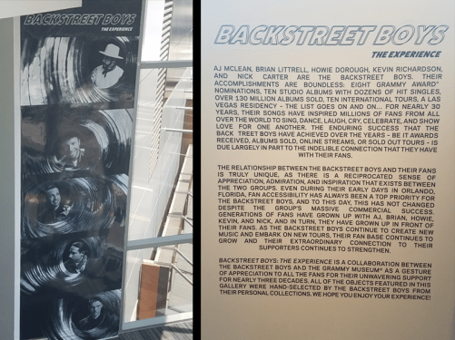 If you can go to the Backstreet Boys Experience at the Grammy Museum? Do it. I cannot say this enough. It’s literally everything for a fan who, if you’re reading this is just as much a die hard as I am. You can see everything you’ve been able to see as a fan on display, bringing back ALL those memories. You can see the little things that mean a lot to the five men who’ve brought us so much joy over the years.