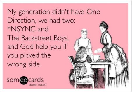 Funny thing was you were allowed to like all the other groups that were out during what I think of as the boy band invasion of the 1990’s. I was openly a fan myself of LFO and 98 Degrees. That was totally okay by my friends back in middle school. We just couldn’t like NSYNC. Ever.